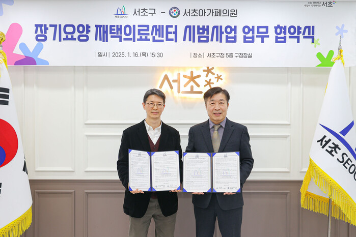 [시민일보 = 박소진 기자] 서울 서초구(구청장 전성수)가 최근 지역 의료기관인 서초아가페의원과 업무협약을 맺고 ‘장기요양 재택의료센터 시범사업’을 시작한다고 17일 밝혔다.