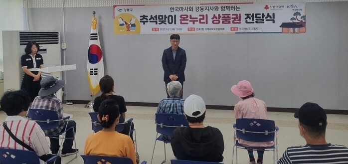 민족 대명절 추석을 맞아 나눔과 후원으로 지역 내 사회적 돌봄을 꾸준히 실천해 오고 있는 한국마사회 강동지사(신현각 지사장)에서 나선 것이다. 명절이 다가올수록 치솟는 물가에 어려움을 겪을 저소득 주민들이 풍성한 추석 명절을 보내길 바라는 마음에서 온누리상품권을 후원했다고 한국마사회는 밝혔다.