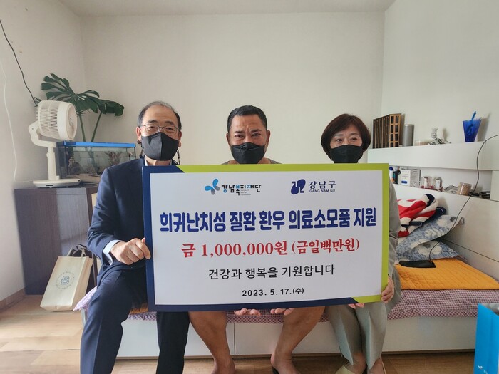 희귀질환 극복의 날(5월 23일)은 희귀질환에 대한 국민의 이해를 높이고 희귀질환의 예방·치료 및 관리 의욕을 고취하기 위해 제정한 법정기념일이다. 희귀난치성 질환은 산정 특례 지원은 받지만 의료소모품 구입 등 지속적인 경제적 부담이 크다. 이에 강남복지재단에서는 올해 신규사업으로 희귀난치성 질환 환우 지원에 나섰다. 75가구에게 각 1백만원, 총 7500만원을 지원했다.