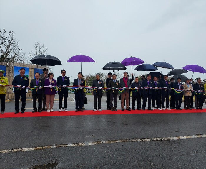 | ▲ 새우란축제 /. 지난 14일 새우란축제 개막식 행사 후 야외전시관 오픈 기념 테이프컷팅(출처=신안군) |