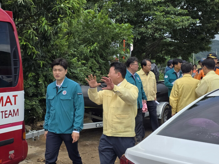 경기도와 가평군은 인명과 재산 피해에 신속히 대응하기 위해 21일 ‘재난현장 통합지원본부’를 공동 구성, 가동했다. 본부는 총괄·구조·이재민구호·응급복구 등 4개 반, 16명 규모로 구성되어 피해 신고 접수, 이재민 긴급생활지원, 현장 환경 정비, 시설 응급복구 등 현장 대응을 맡는다. 김성중 경기도 행정1부지사는 “무엇보다 현장의 목소리에 귀를 기울이고 실질적 지원이 이뤄져야 한다”고 당부했다.