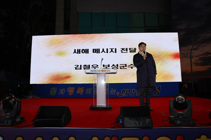 | ▲ 보성군 2024년 갑진년 새해 해맞이 행사 성료 -김철우 군수가 새해 메시지를 전하고 있다..(출처=보성군) |