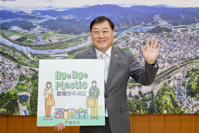 [합천=이영수 기자] 김윤철 합천군수는 정명근 화성시장과 김병규 경상남도 경제부지사의 지목을 받아 26일 ‘바이바이 플라스틱 챌린지’에 동참했다.