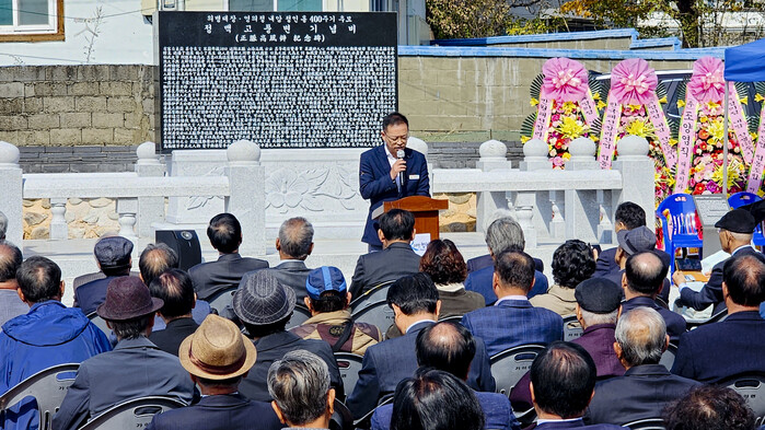 [합천=이영수 기자] 내암 정인홍 400주기 추모 정맥고풍변 기념비 제막식이 26일 가야면 내암 정인홍선생 유물전시관에서 내암 선생 후손 등을 비롯한 200여명이 참석한 가운데 치러졌다.