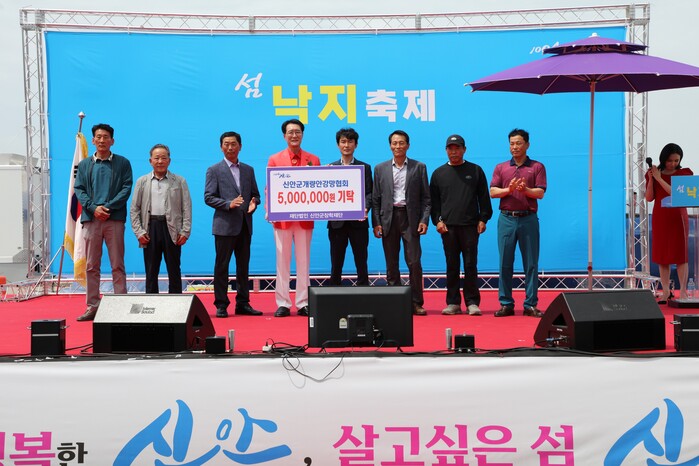 [신안=황승순 기자]신안군개량안강망협회(회장 김명일) 회원들은 지난 26일 섬 낙지 축제 개막식(1004섬 분재정원 주차장)에서 지역 인재 육성을 위해 장학기금 5백만 원을 신안군장학재단(이사장 박우량)에 전달했다.