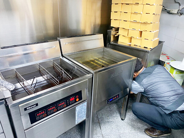 | ▲ 린나이 서비스 직원이 한 프랜차이즈의 가스 튀김기를 사전점검 하는 모습 |