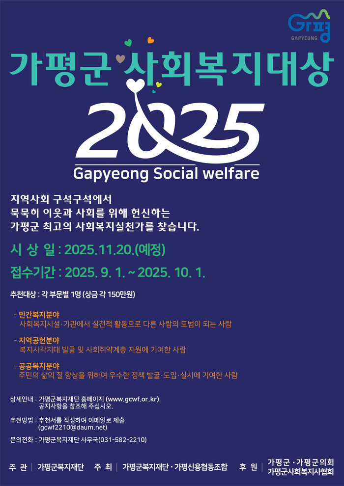 가평군복지재단 관계자는 “지역 곳곳에서 묵묵히 이웃을 위해 봉사하는 사회복지 실천가들이 이번 기회를 통해 널리 알려지길 바란다”고 말했다.