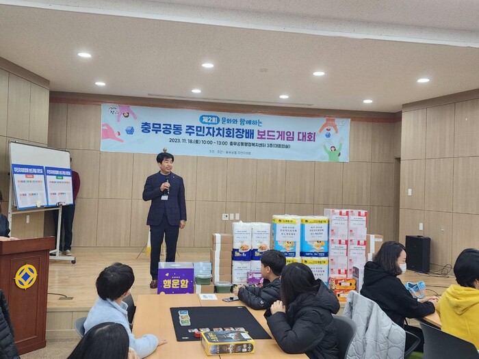 보드게임대회는 젊은 가족 단위가 많은 충무공동에서 가족과 이웃이 함께 소통할 수 있는 문화 나눔의 기회를 제공하고자 2021년부터 주민자치 특성화 사업으로 추진하고 있다. 보드게임은 판 위에서 말이나 카드를 놓고 간단한 규칙에 따라 가족이 함께 즐기는 문화 활동이다.