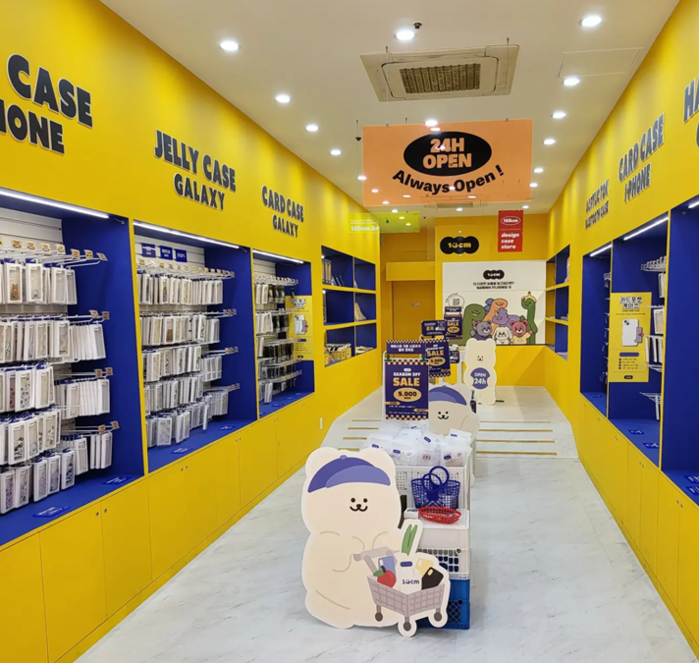 매장에는 아이폰 및 갤럭시 휴대폰 케이스를 포함한 다양한 상품이 판매되고 진열될 예정이다