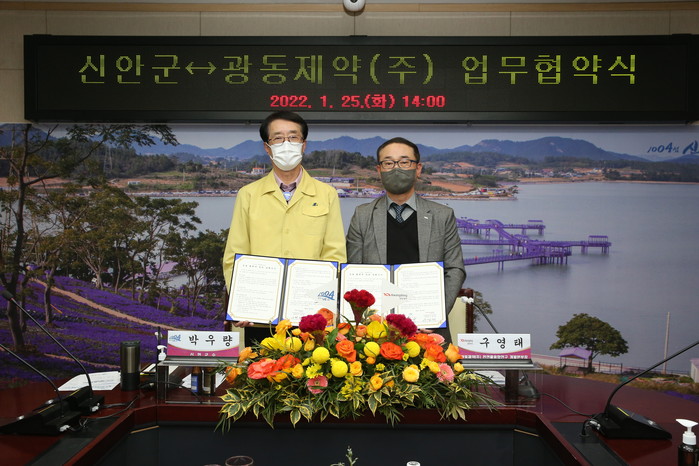 | ▲ 신안군, 맨드라미 음료 개발을 위한 광동제약과 업무협약 체결 |