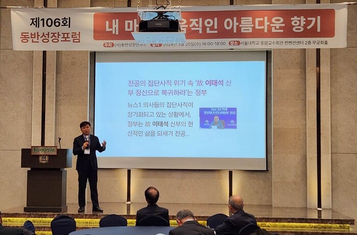 지난 20일 오후 4시 서울대학교 호암교수회관 컨벤션센터에서 진행된 이번 포럼에서는 KBS 추적60분 PD와 법무부교화방송 자문위원을 역임한 구수환 이태석재단 이사장이 '내 마음을 움직인 아름다운 향기'라는 주제로 발표했다.