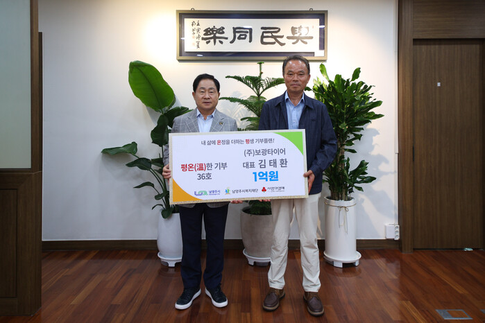 원병일 남양주시복지재단 대표이사도 “김태환 대표님의 변함없는 나눔 실천에 깊이 감사드리며, 전해주신 기부금은 도움이 필요한 이웃에게 소중히 전달될 수 있도록 최선을 다하겠다”고 전했다.