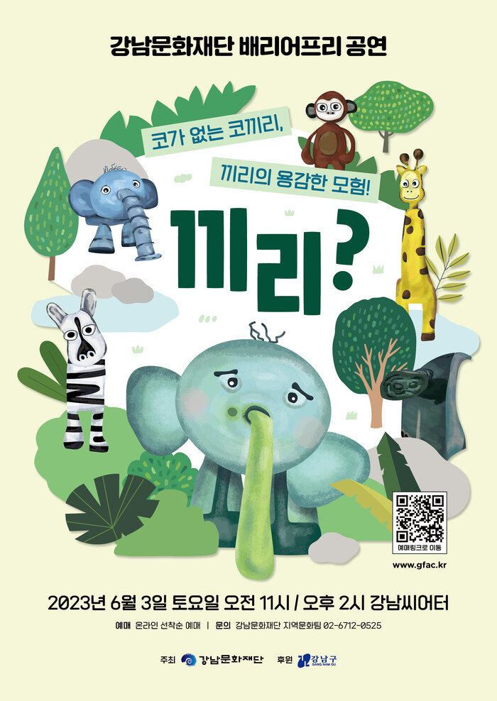 코가 없이 태어난 코끼리 ‘끼리’가 숲 속 동물 친구들과 만나면서 벌어지는 엉뚱 발랄한 사건을 통해 서로를 존중하고 자존감을 찾아가는 이야기를 담고 있다.