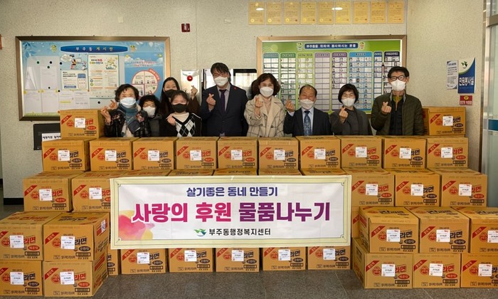 부주동은 기탁물품을 한부모 가족 및 저소득층 100세대에 전달할 예정이다.