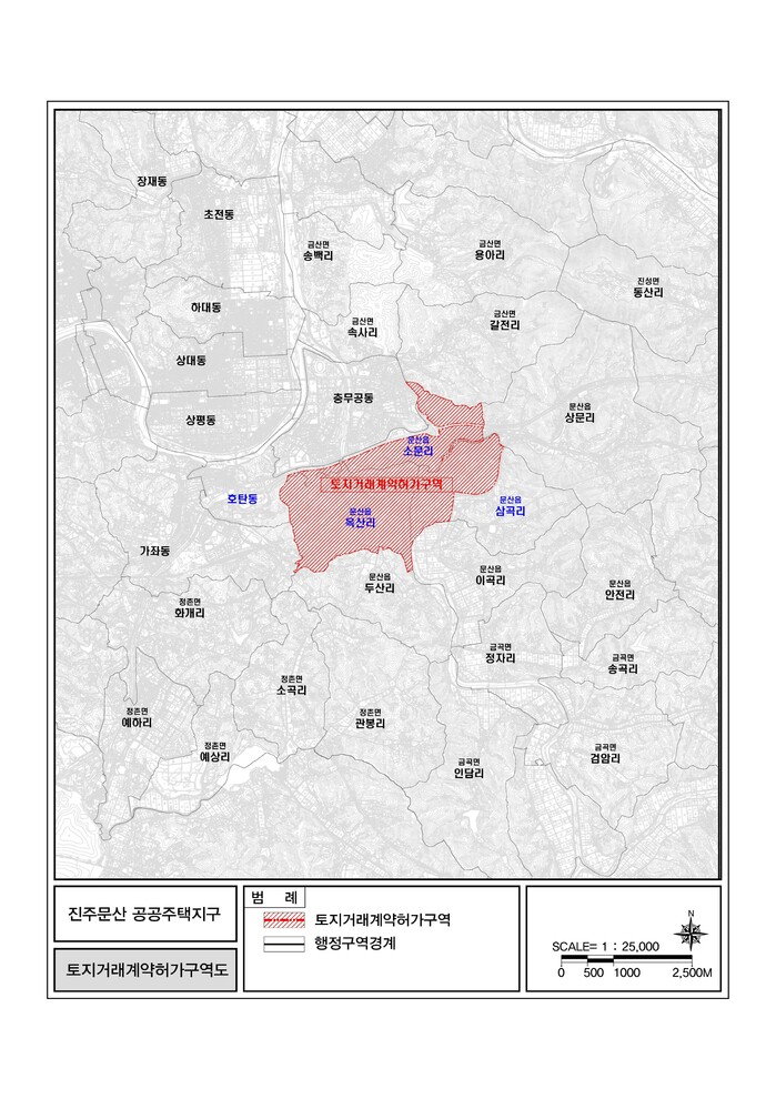 이번에 지정된 토지거래허가구역은 국토교통부가 지난 16일에 발표한 ‘진주문산 공공주택지구’ 콤팩트시티 조성과 관련하여 선정된 사업부지와 인근 지역을 포함하여 호탄동, 문산읍 소문리·삼곡리·옥산리 일원 8786필지 7.49㎢에 대해 투기성 토지거래 사전 차단 및 실수요자 중심의 부동산시장 질서 확립을 위하여 조치하게 되었다.