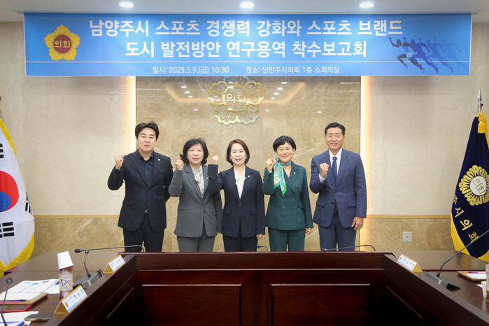 한편,‘남양주시 스포츠 경쟁력 강화와 스포츠 브랜드 도시 발전방안 연구모임’은 정현미 의원(대표), 김영실 의원, 박은경 의원, 한송연 의원, 김상수 의원, 손정자 의원 등 6명의 의원으로 구성되었으며, 이번 착수보고회를 시작으로 오는 10월까지 약 5개월간 본격적인 연구활동을 이어 나갈 예정이다.