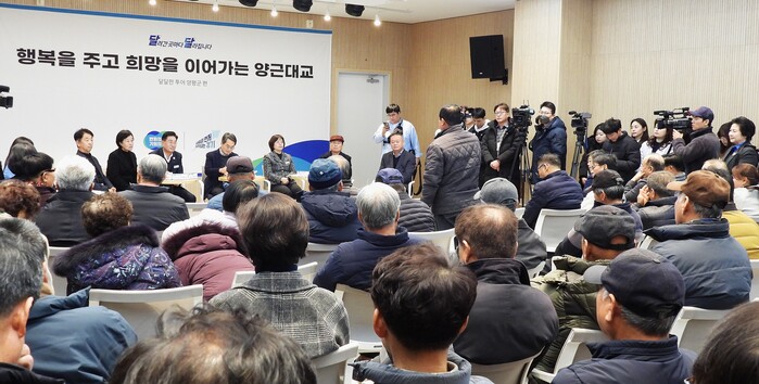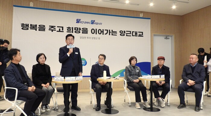 12월 4일, 양평군(군수 전진선)과 경기도는 양평도서관에서 ‘양근대교 건설공사 사업설명회’를 공동 개최하며, 그동안의 추진 경과와 향후 계획을 군민들에게 상세히 설명했다. 이날 자리에는 경기도의 김동연 도지사가 직접 참석해 군민들의 질의에 답하며 사업 추진 의지를 분명히 했다.