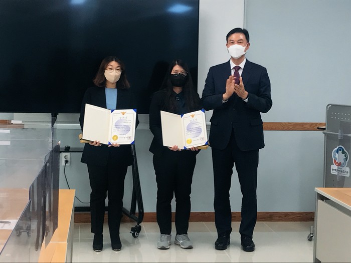 | ▲ 염전종사자 장애인 등록 절차 지원 및 심리치료 등 피해자 보호에 기여한 전남장애인권익옹호기관 명여운 팀장과 목포스마일센터 염승희 부센터장에게 각각 전남경찰청장의 감사장을 수여했다.(출처=전남경찰청) |