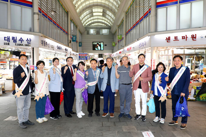 의원들은 전통시장 내 각 점포를 돌며 추석 대목을 맞아 방문객 응대로 분주한 상인들을 격려하고 시장 운영 현황과 애로사항을 경청했다. 시장을 찾은 지역 주민들과도 추석 인사를 나누며 전통시장 이용을 적극 독려했다.
