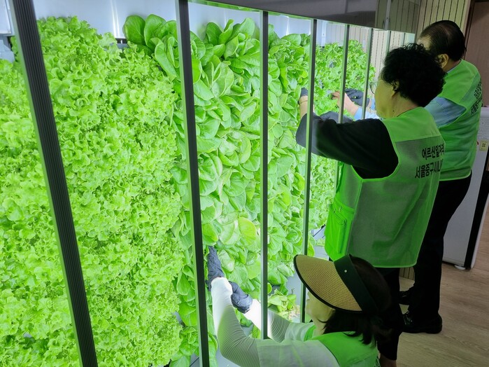 [시민일보 = 여영준 기자] 서울 중구(구청장 김길성)에서 조성한 도심형 스마트팜에서 첫 수확물이 나왔다.
