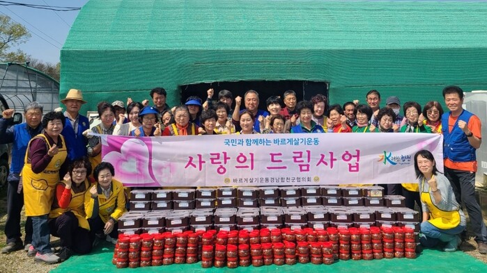 한편 바르게살기운동 합천군협의회는 매년 환경정화활동, 일손돕기 등 다양한 봉사활동뿐만 아니라, 소외된 어려운 가정을 대상으로 계절김치 나눔사업을 실시하며 지역사회에 따뜻한 나눔을 실천해 오고 있다.