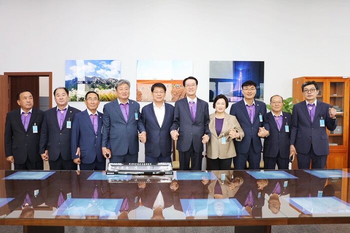 | ▲ 지난 9월 18일 국회 예산결산위원장과 면담 후 기념 촬영(출처=신안군) |