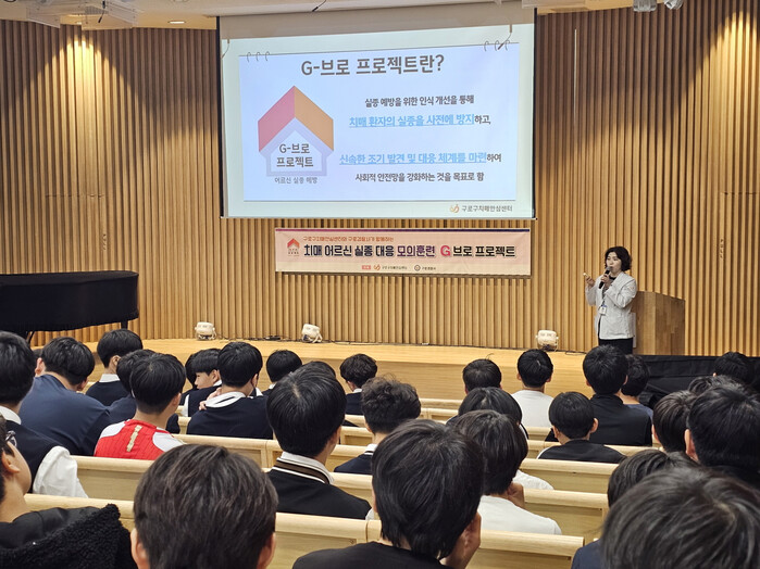 교육에는 구로구치매안심센터, 구로경찰서가 90여명의 학생들을 대상으로 ▲치매에 대한 이해 ▲배회 및 실종 치매 환자의 특징 ▲실종 시 올바른 신고 방법 ▲발견 시 대응 요령 등을 강의했다.