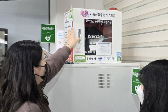 | ▲ 면목본동주민센터에 설치된 자동심장충격기의 모습.(사진=중랑구청 제공) |