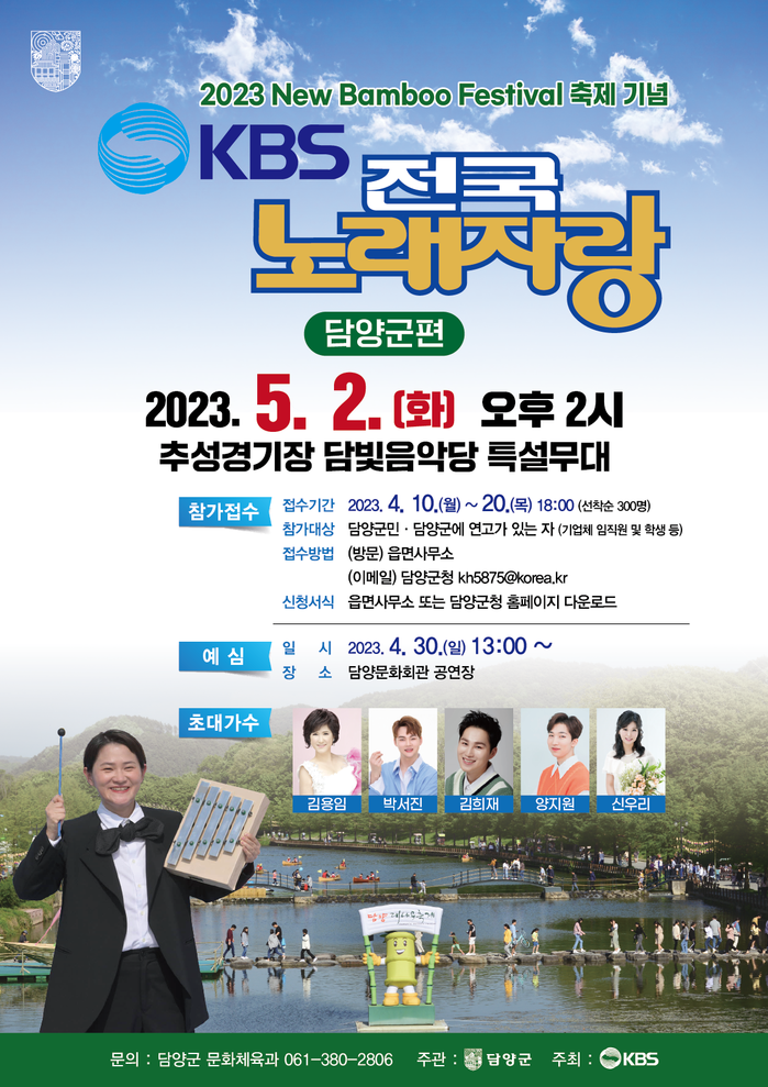 [담양=황승순 기자]전 국민의 사랑을 받는 KBS 전국노래자랑이 오는 5월 2일 ‘2023 New Bamboo Festival’과 담빛음악당 개관을 기념해 담양군에서 개최된다.