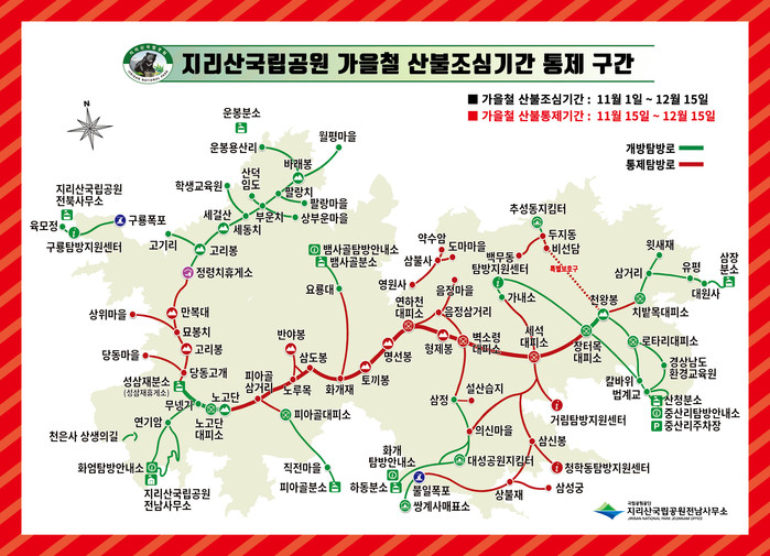 | ▲ 지리산국립공원 가을철 산불조심기간 통제구간(출처=지리산국립공원) |