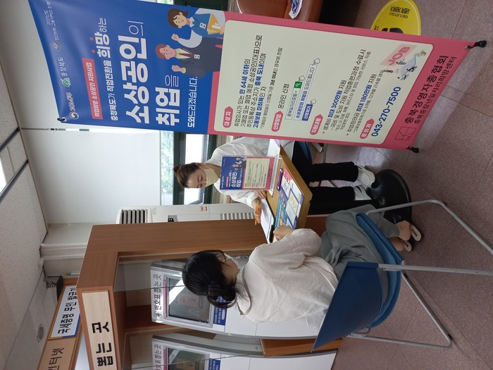본 사업의 지원조건인 폐업이 세무서에서 처리되는 것을 감안하여 청주세무서 민원봉사실 내에 홍보부스를 설치하고 전담인력 1명을 배치하여 폐업 신고 등을 위해 세무서를 방문한 소상공인을 대상으로 사업 안내와 전직 상담을 진행하고 있다.
