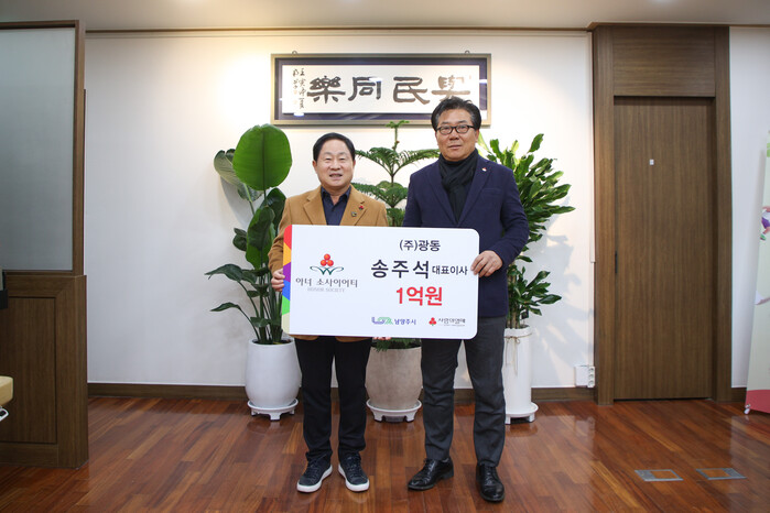 주광덕 시장은 “어려운 이웃을 위해 큰 결심을 해주신 송주석 대표께 깊이 감사드린다”며 “시는 복지재단과 함께 기부자 예우를 강화하고, 나눔이 선순환하는 도시를 만들기 위해 최선을 다하겠다”고 밝혔다.