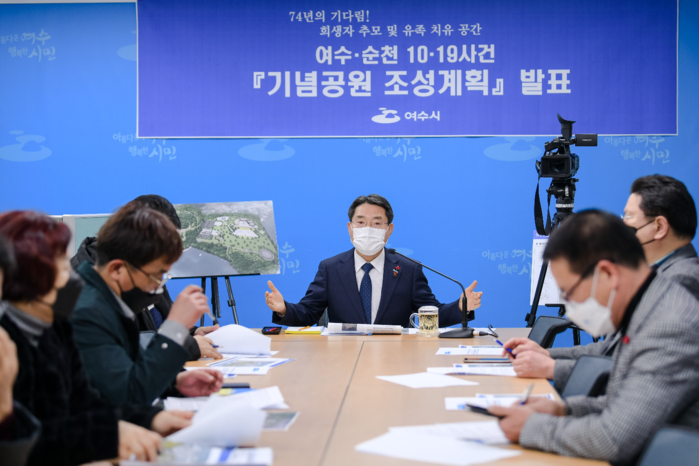 | ▲ 권오봉 여수시장이 21일 오전 시청 브리핑 룸에서 ‘여순사건 기념공원 조성을 위한 세부 계획’과 앞으로의 일정에 대해 공식 발표했다.(출처=여수시청) |