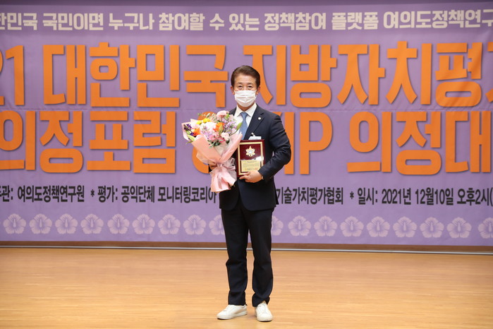 ‘2021 대한민국 지방자치평가연계 의정대상’은 전국의 지방의원을 대상으로 지난달 신청을 받아 심사위원들의 엄격한 심사와 정성평가를 거친 후 전경선 위원장을 대상 수상자로 확정하고 10일 국회 의원회관에서 시상식을 개최했다.
