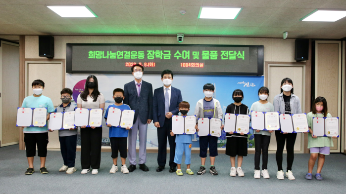 [신안=황승순 기자] 신안군은 9일 (사)희망을나누는사람들과 ‘희망나눔 연결운동’장학금 및 물품 전달식을 가졌다.
