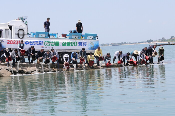무안군은 지난 2000년부터 지속적으로 방류사업을 시행하여 현재까지 감성돔, 점농어, 갑오징어 등 총 6,515만 마리의 수산 종자를 방류했다. 또한, 무안군 대표 수산물인 낙지자원 조성을 위한 낙지 목장 4개소와 낙지산란장 6개소를 운영 중이며, 이번 낙지 금어기(6.21∼7.20)에 맞추어 교미 낙지와 어미 낙지 25,000마리를 추가로 방류할 예정이다.