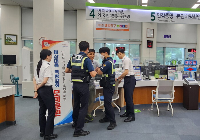 시는 이날 종합민원실 훈련에 이어 7월 말까지 30개 읍·면사무소 및 동 행정복지센터에서도 경찰과 합동으로 특이민원 발생 대비 모의훈련을 실시할 예정이다.