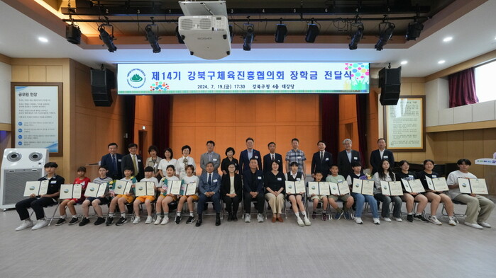 [시민일보 = 여영준 기자] 서울 강북구(구청장 이순희)는 최근 강북구 체육진흥협의회(수석부회장 최용호)가 구청 대강당에서 엘리트 학생 선수 15명에게 장학금을 전달했다고 밝혔다.