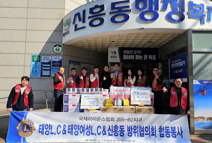 [목포=황승순 기자]신흥동 방위협의회(회장 이호열)와 태양여성라이온스(회장 모정연)가 지난 3일 화장지 등 생필품 4종(150만원 상당)을 신흥동에 기탁해 따뜻한 이웃사랑을 전했다.