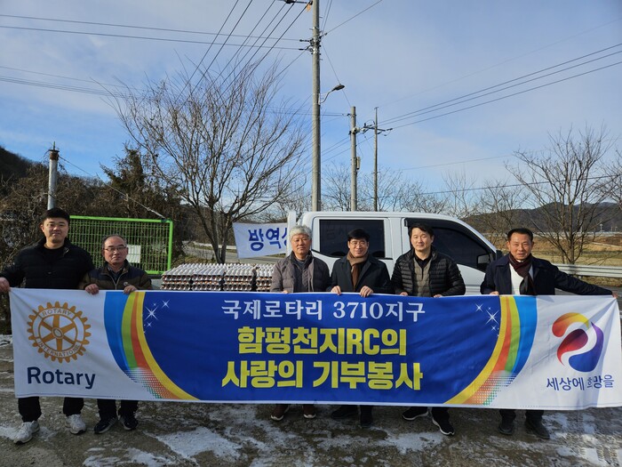 [함평=황승순 기자]함평천지로타리클럽(회장 김영진)은 17일 함평군 해보면사무소를 방문해 추운 겨울 해보면 어르신들에게 온기를 나누고자 계란 100판을 전달했다.