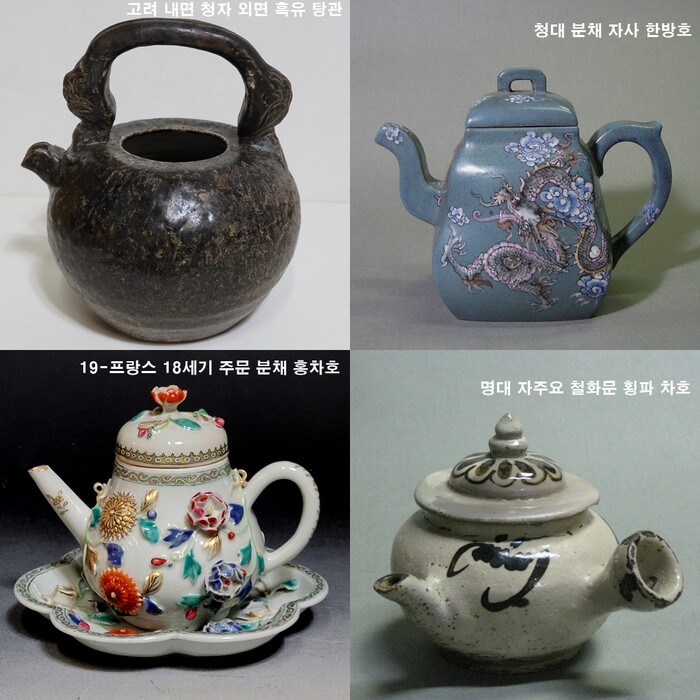 | ▲ 보성군, 4월 29일부터 중국 신농시대 ~ 18세기까지 다구 전시회 개최(고려 내면 청자 외면 흑유 탕관, 청대 분채 자사 한방호, 프랑스 18세기 주문 분채 홍차호, 명(출처=보성군) |