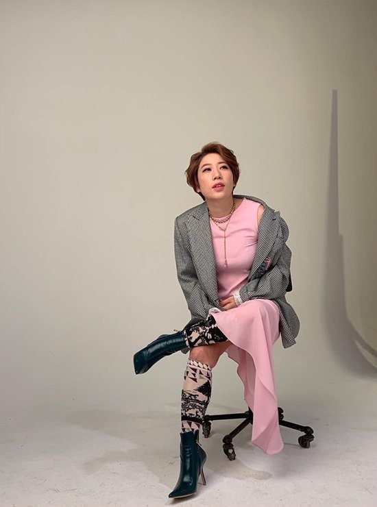 사진 속 김영희는 핑크 원피스와 회색체크 자켓, 굽이 높은 부츠로 멋을 내고 멋있는 포즈를 취하고 있다. 평소와 다른 우아한 스타일이 네티즌들의 눈길을 사로잡는다.