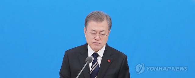문재인 대통령이 17일 오전 청와대에서 열린 첫 확대경제회의에서 모니터에 표시되는 홍남기 경제부총리 발표 자료를 유심히 살펴보고 있다.
