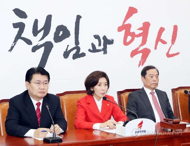 자유한국당 나경원 원내대표가 17일 국회에서 열린 비상대책위원회 회의에서 발언하고 있다.