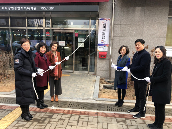 경기 하남시 치매안심센터는 18일 미사강변종합사회복지관을 제1호 치매극복 선도단체로 지정하고 현판식을 개최했다. 미사강변종합사회복지관은 치매환자를 치매안심센터에 연계하는 역할 등을 수행하게 된다. 사진은 현판식을 하는 모습. (사진제공=하남시청)