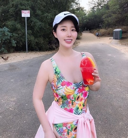 사진에는 하와이에서 수영복을 입고 거리를 걷고 있는 나비의 모습이 담겨있다. 청순한 외모와 상반되는 글래머러스한 몸매가 시선을 사로잡는다.