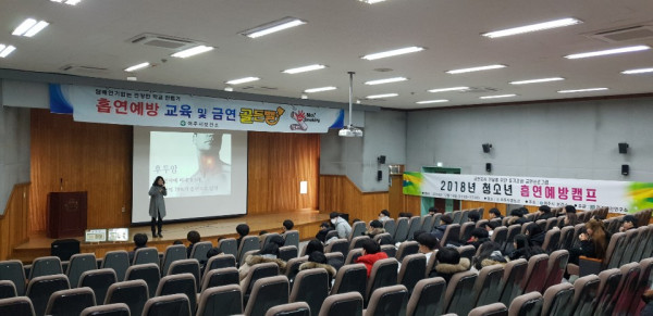 경기 여주시 보건소는 최근 여주자영농고에서 학생 100명을 대상으로 ‘청소년 흡연예방캠프’를 운영했다. 이번 캠프는 흡연과 음주에 대한 올바른 인식 함양을 통해 건강한 삶과 학습능률 향상에 기여하고자 마련됐다. 사진은 캠프가 진행되는 모습. (사진제공=여주시청)