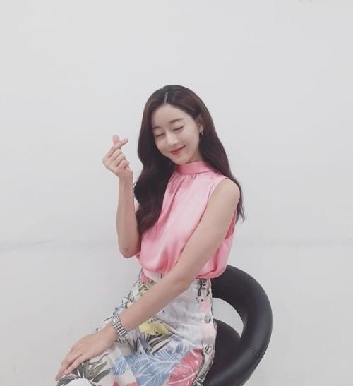 사진 속 오승아는 핑크 컬러의 홀터넥을 입고 화려한 무늬의 스커트를 입어 여성스러움을 극대화했다. 눈을 감고 손하트를 하며 미소 짓는 그녀의 모습은 청순한 분위기를 자아낸다.