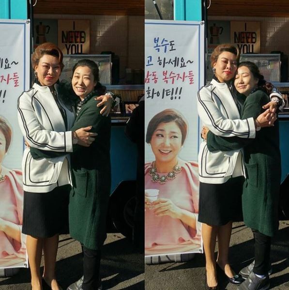 사진 속에는 정영주와 라미란이 다정한 모습으로 카메라를 향해 포즈를 취하고 있다. 특히 두 사람은 따뜻한 포옹을 나눠 보는 이들의 시선을 사로잡았다.