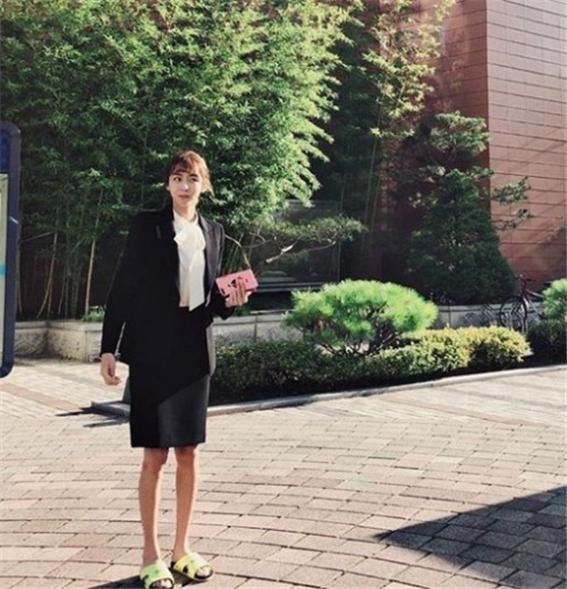 공개된 사진 속에는 세련미 넘치는 오피스룩을 차려 입은 유이의 모습이 담겨 있다.